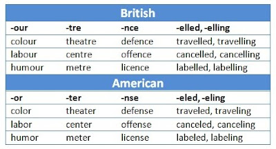 An essay will not be a good one if the spelling of words is a problem. There are two sets of spelling in English – British English and American English. The following demonstrates the difference between the two..
